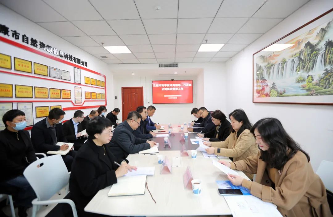 12月1日,安康市科技局局長李珺,副局長劉安琴帶領相關科室負責同志到市自然資源信息科技有限公司調研科技創新及重點科技型企業發展工作。高新區科技資源統籌主任、高新區經濟發展科技局副局長尹瑋瑋,公司董事長劉洪波、總經理黃光俊、副總經理丁浩參加調研。